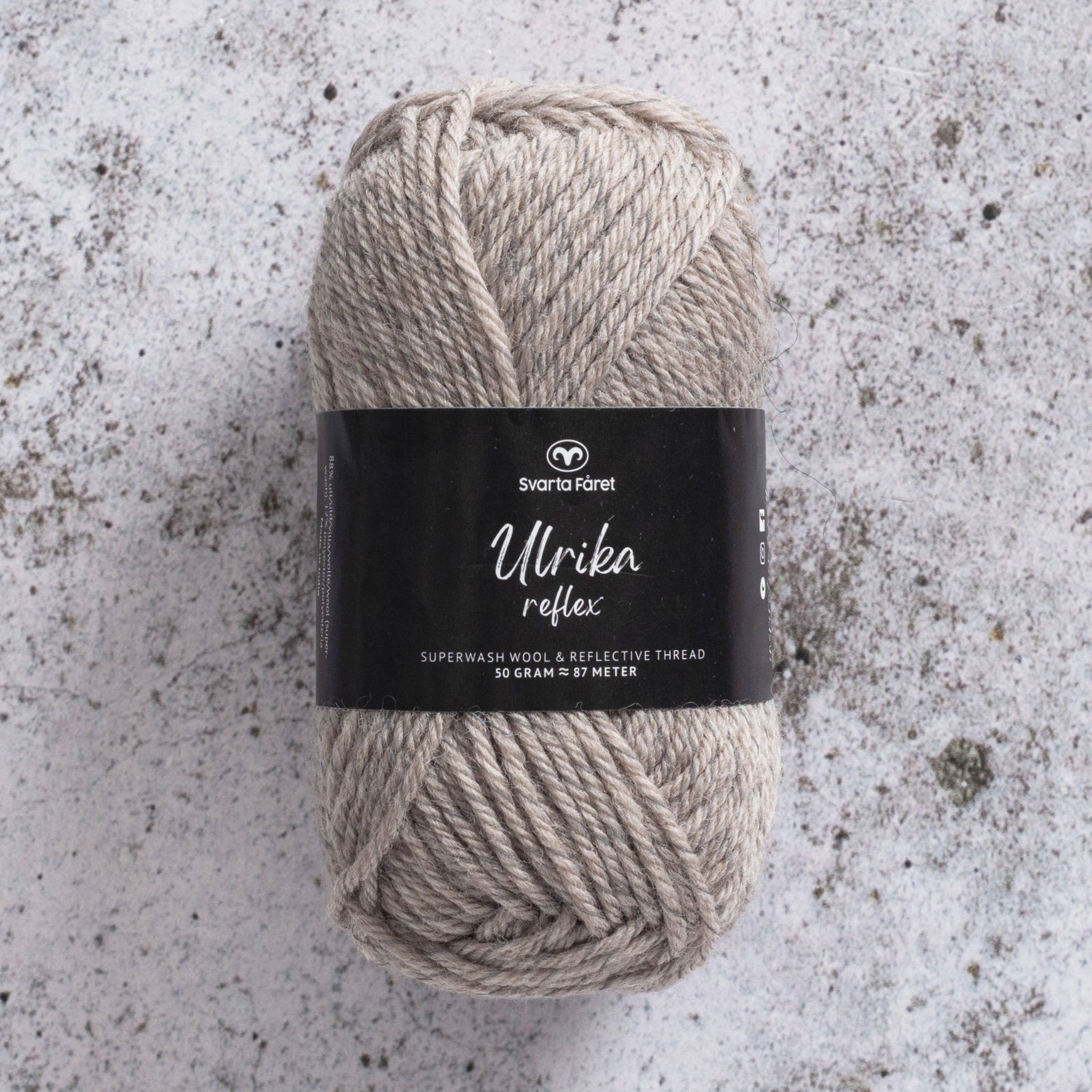 Ulrika Reflex innehåller 88 % superwashbehandlad ull och 12 % reflextråd i polyester. Ulrika Reflex kan med fördel stickas eller virkas till varma och sköna halsdukar, pannband, mössor, handledsvärmare, vantar och hundvästar mm.