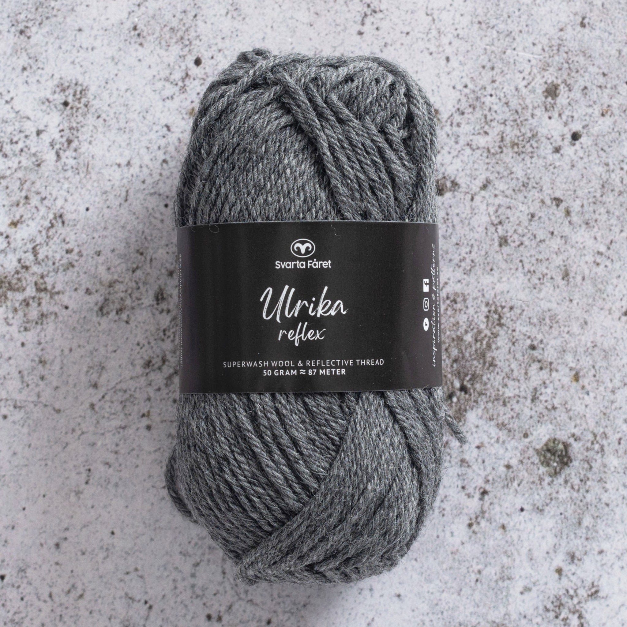 Ulrika Reflex innehåller 88 % superwashbehandlad ull och 12 % reflextråd i polyester. Ulrika Reflex kan med fördel stickas eller virkas till varma och sköna halsdukar, pannband, mössor, handledsvärmare, vantar och hundvästar mm.
